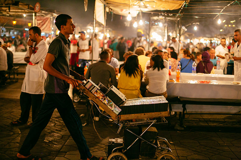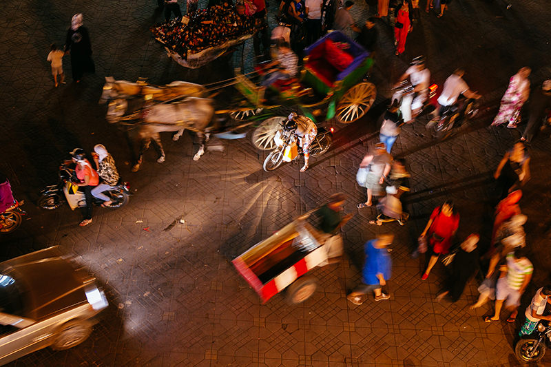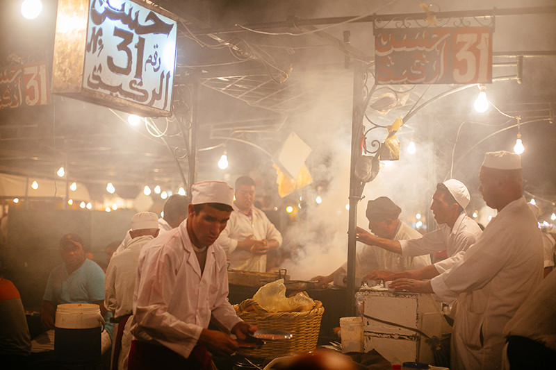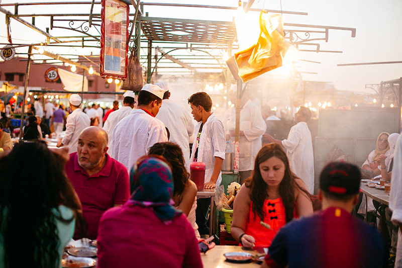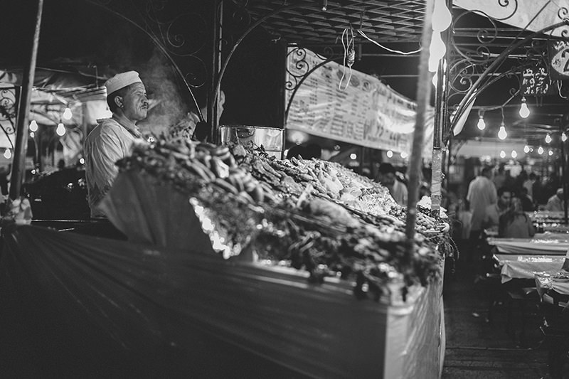 We found a great bar overlooking the main square (Jemaa El-fna) to watch the market transform from the day time shopping activities to the open air restaurant that it becomes every evening.