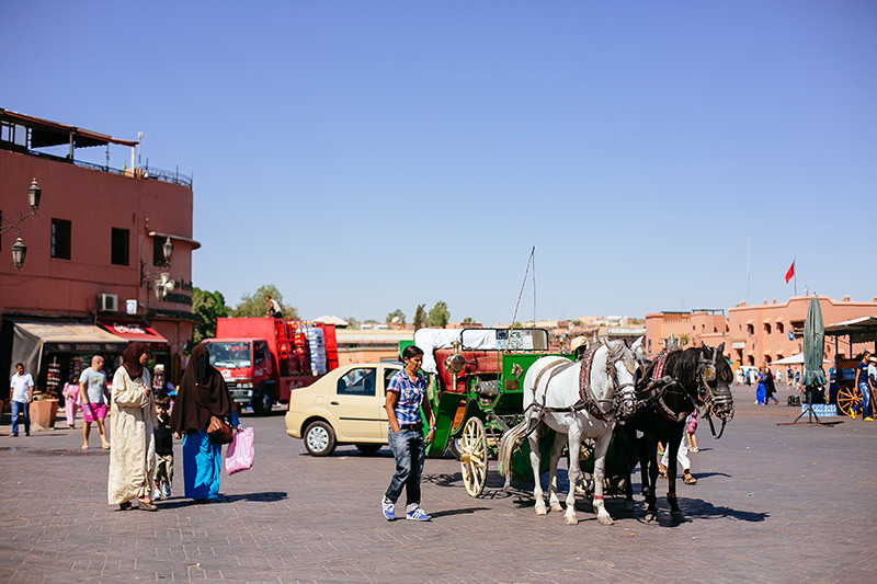 The city is an assault on the senses. When you first step out the taxi, the dust, heat and speed of the traffic around you can be intimidating but thankfully, our riad was an oasis of calm and cool. We stayed at Dar Les Cigognes through Mr & Mrs Smith. After a 3 hour nap (can’t do that with a toddler around) we headed out into the fray. We realised by the time that we left that although it seems to be chaos on the streets, it actually isn’t. Yes, there are motorbikes whizzing past you constantly, missing you by a matter of centimeters in those tight alleyways, bicycles, as well as carts pulled by worn looking donkeys; if you keep your wits about you, you are totally safe. There don’t seem to be angry drivers, just fast ones. The Moroccan people are genuinely lovely and we never felt unsafe or overly hassled, even in the main market. Also, aside from the occasional inevitable waft of sewage, we were both surprised how lovely Marrakech smelt. It has a soapy, spicy welcoming smell. I miss it all already.