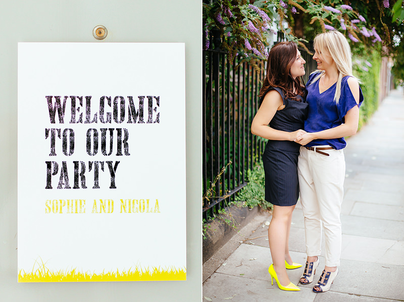 Overlooking the stunning London skyline on Saturday afternoon, the gorgeous Nicola and Sophie were married in a humanist ceremony in front of all their friends and family, in their flat in Kennington. Here are a few images from the day.