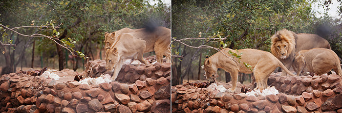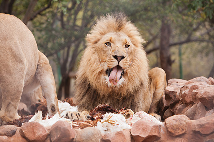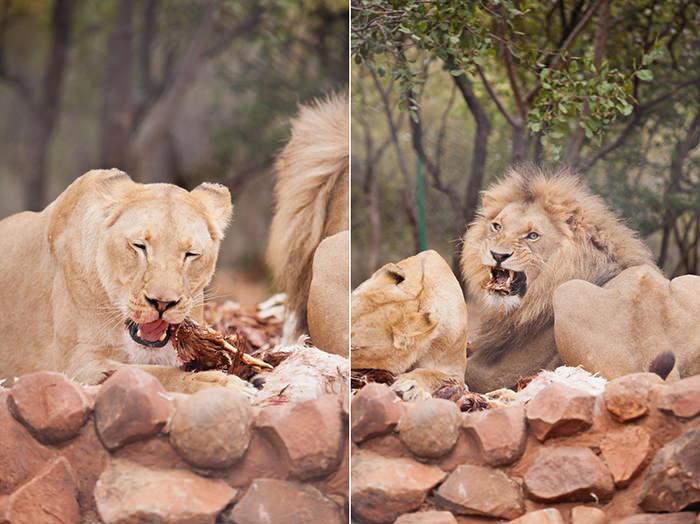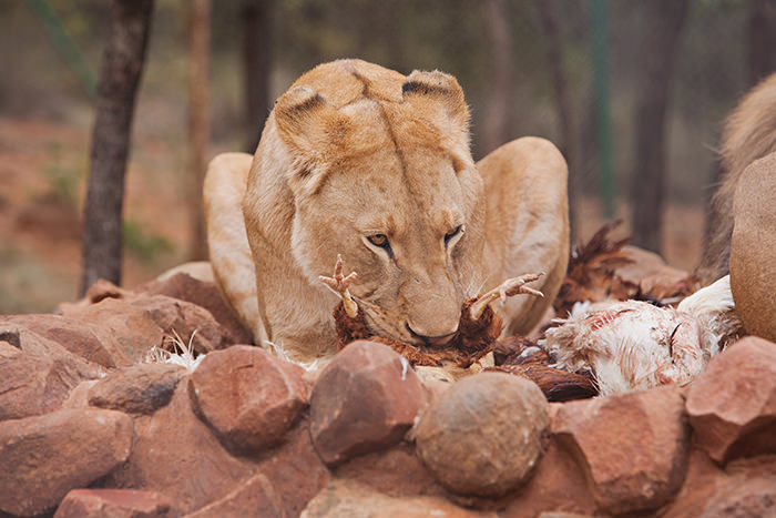 Just as we wandered over to the lion area, we noticed this wheelbarrow full of dead chickens. Clearly, we’d just hit feeding time.
